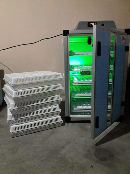 Nous sommes en possession d'un couvoir d'une capacité de 18.000 Oeufs a couver et d'un éclosoir de 10.000 poussins.